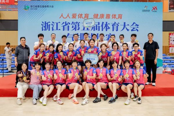 2025年10月17日至19日,浙江省第五届体育大会气排球比赛在台州市三门县举行,我院教师刘曙亮、金赛英作为代表参赛。在经过为期两天的激烈角逐,顽强拼搏,最终摘得行业中年女子组桂冠!