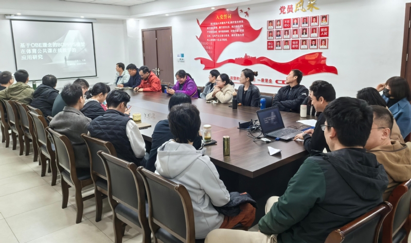 刘磊老师的课题《基于OBE理念的BOPPPS模型在体育公共课在线教学的应用研究》从研究缘起与价值、理论模型与设计、研究路径与方法、四周教学实践流程、结果与成效验证、创新提炼与辐射等进行了汇报。黎昕老师带来“互动、娱乐、健康-基于体育游戏在《大学体育-羽毛球》的教学改革”课题,他从项目立项依据、项目实施及展开、项目成果、项目创新点等展开说明。现场与会教师对项目进行了意见建议,并一致通过结题答辩。